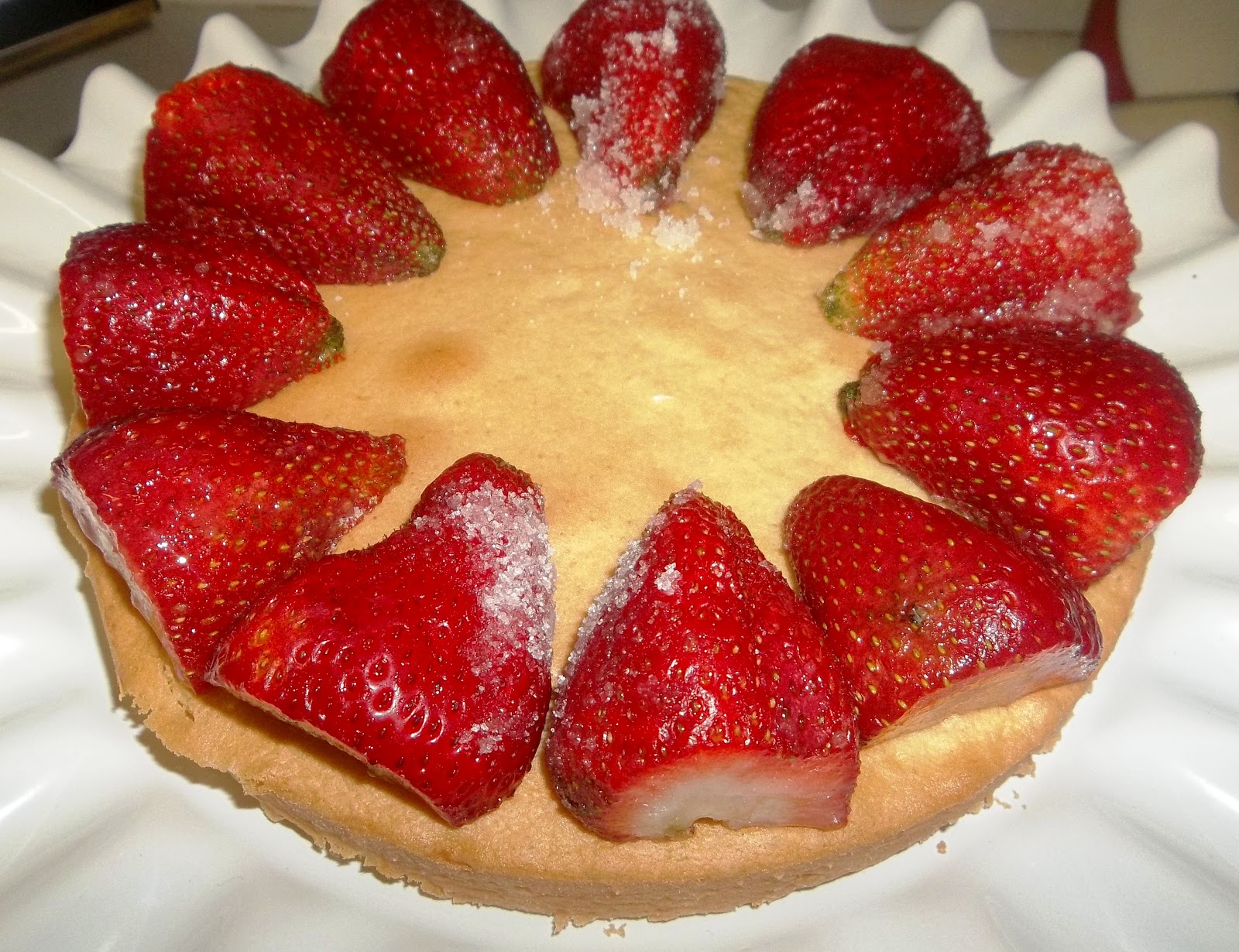 You cut the strawberries in half then add 1/3 cup of sugar then let them sit while you make the cake or I actually one of the times made the cake the night before then assembled it the next day.. So I just let the strawberries sit for about 30 minutes.