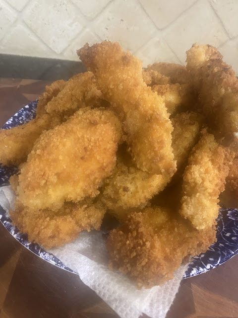 One thing I have learned is to cut my own chicken tenders myself. When you buy precut chicken tenders there is that stringy tendon attached sometimes can be rubbery or tough. Also you will see in the the picture below how many tenders I get out of 2 good size chicken breast. I fed 6 people including myself then had leftovers.